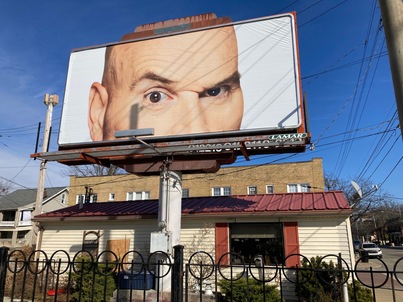 Normal Cleveland things. This is an advertisement is for Cleveland-area attorney Tim Misney, whose original advertising campaign featured Tim looking sternly at the camera with a raised eyebrow saying. "Misney Makes Them Pay". It is so well known the he now has a whole series of billboards that don't say anything about law or attorneys. Some have holiday messages, some are in the style of Andy Warhol, some implore kids to study and stay in school. Misney is part of local Cleveland lore.